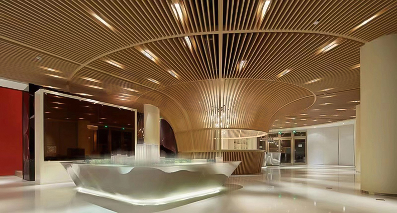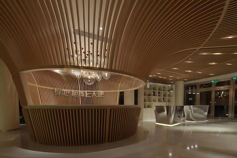 木纹弧形铝方通吊顶