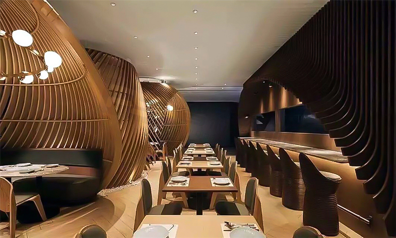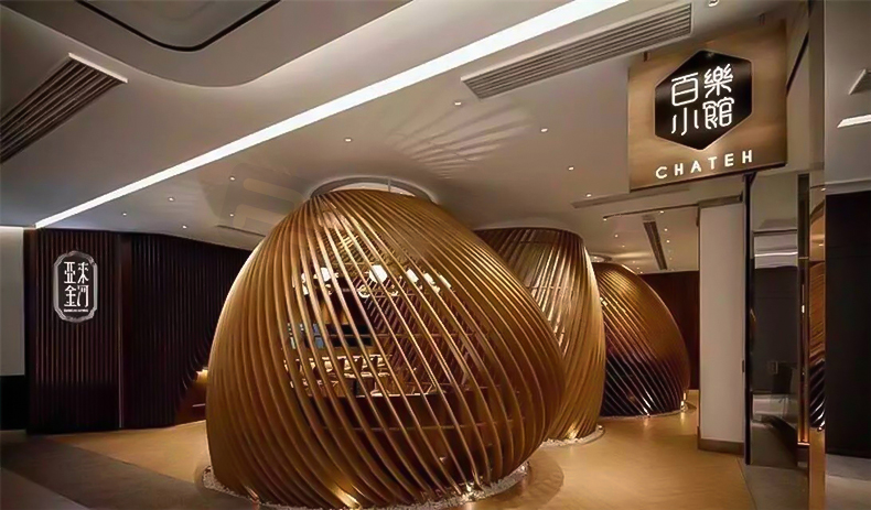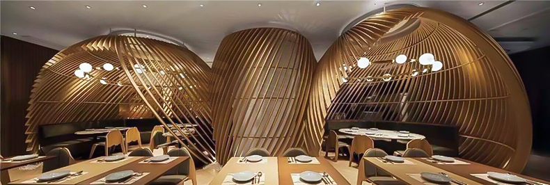 高档餐厅弧形铝方通装饰